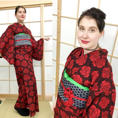 | 着物について | バレンタインにぴったりのコーデかもしれません。 薔薇柄のウール単衣を水玉の半幅帯と合わせたコーディネートです。 気に入り〜♡ Blog: www.salz-tokyo.com SNS: @salztokyo |