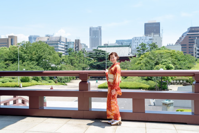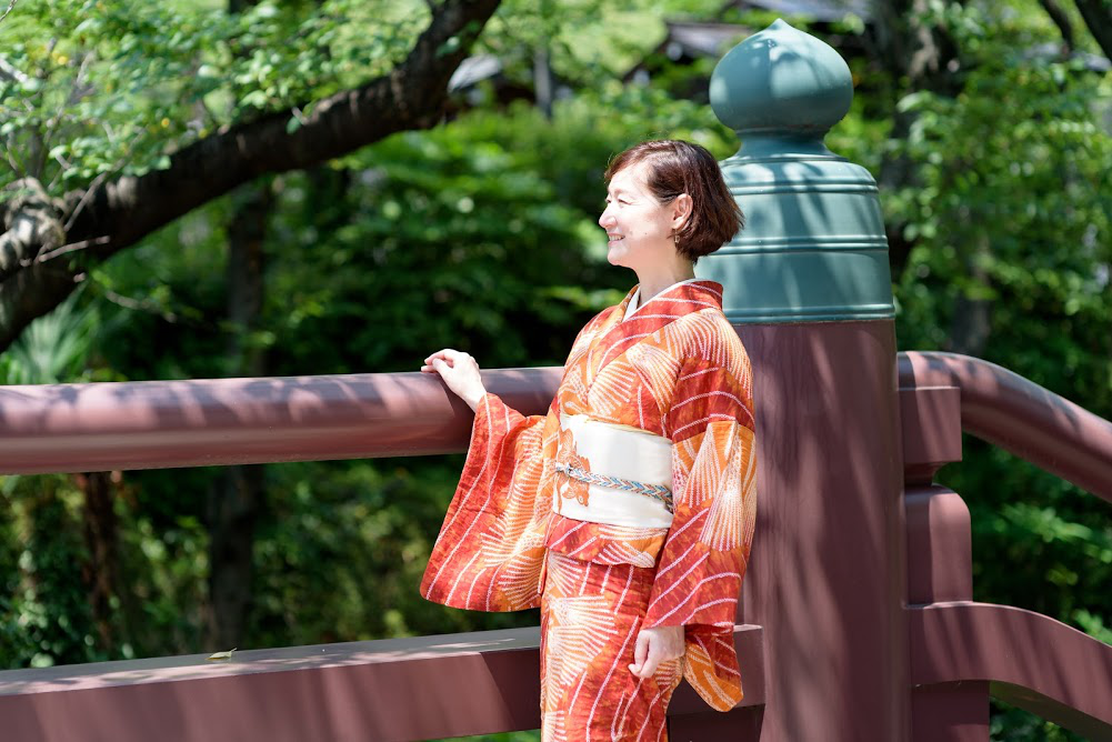 90分のレッスン後、美しい浴衣姿に完成したところで、ご近所の「毘沙門天様」へお出かけして、ステキな浴衣ポーズの写真を撮ります。