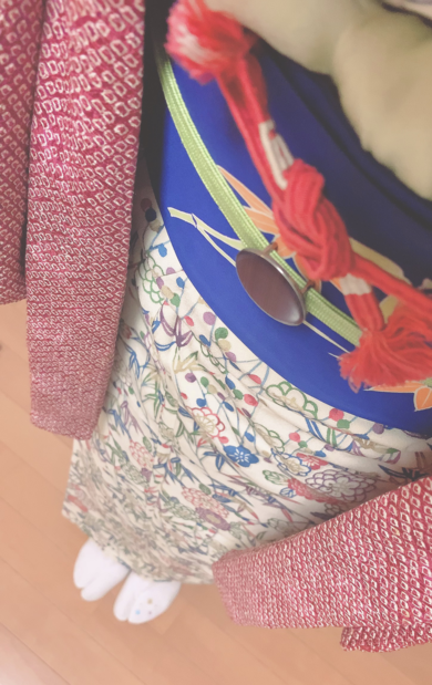| 着物について | 江戸びんがたと青い帯、 松竹梅のちょっとおめでたい柄の着物で お正月を楽しむ♪ |