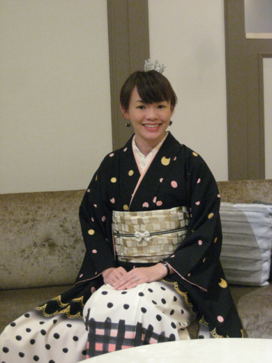 | 着物について | 着付け教室の新年会に行ってきました。 新年会ということで、みなさん訪問着をお召しになるだろうと考えて、木は森に隠れない的発想でお振袖らしからぬ柄のお振袖にしました。 ツモリチサトのお振袖にmiki sakuraさんのふわふわ帯ゴールドで、オトナお振りコーデです。 ディズニーリゾートという場所ということで、クラウン載せてみましたヨ♪ |