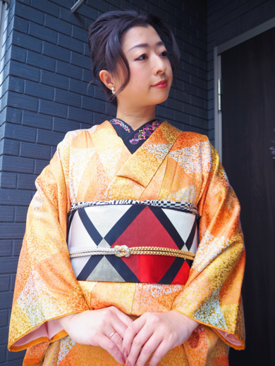| 着物について | 友人の結婚パーティーへ光沢のあるゴールドオレンジの小紋を着ていきました。 コーデ詳細はBLOGから。 プロフィールからどうぞ。 |