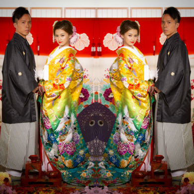 | 着物について | The black and red 振袖 rental from 六本木mine The yellow 色打掛 is for my wedding photo The blue 振袖 is buy from vintage kimono shop! |