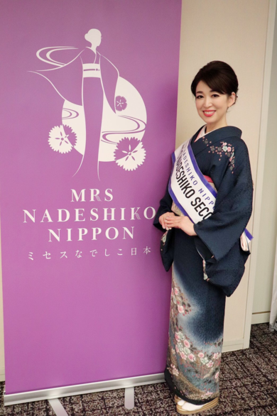 | 着物について | ミセスなでしこ日本2020の大会にて。 作家物の藍色の辻ヶ花の訪問着です。 シックな色味なので、重ね襟は薄いピンクで可愛らしさを出しました。 |