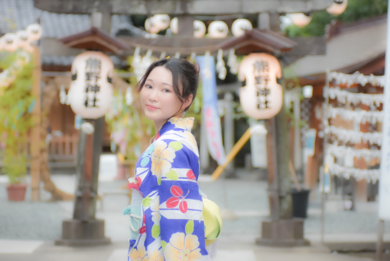 | 着物について | 🌻をテーマに若々しいフレッシュさに合わせてコーディネート ビビットな色使いとレトロな街並みとのミックスで 浴衣姿の夏感を演出 model 伊藤 若菜 |