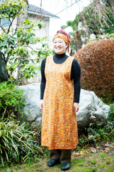 | 着物について | ウールの着物をエプロンドレスに どんな体型にも合うように紐で調整できます |