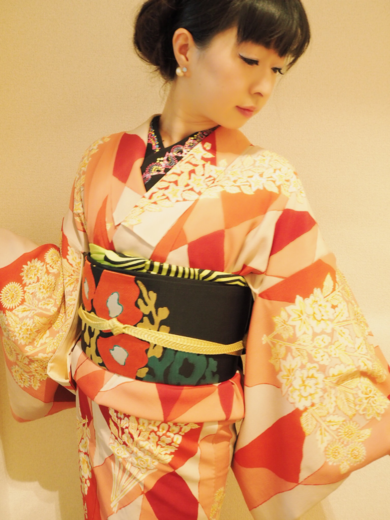 | 着物について | ストロベリーカラーのダイヤ柄に、洋風の花束模様のお召。 持っているアンティークの中で1番のお気にいり♡ |