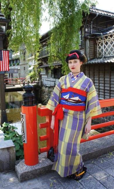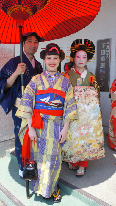 | 着物について | 下田の黒船祭に花魁道中とパレードと参加しました。 お祭のテーマに合わせて船の帯を選び、日本髪デビュー☆ 大好きー!! |