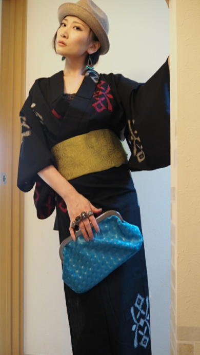 | 着物について | 銘仙の単着方を着流しスタイルで。 男帯が無いから半幅帯。 |