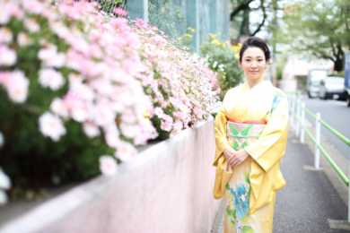 | 着物について | ラッキーカラーの黄色のお着物で撮影しました。 着付け師 村上裕子 着物レンタル 万インターナショナル |