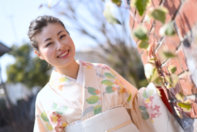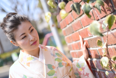 | 着物について | 春目前の、やわらかい日差しの中での撮影でした。 お着物は、クリーム色の紬ブーケのようなお花柄 ヒトメボレで買った、自分で初めて買ったお着物です 帯は川島織物さん モコモコとしたボーダーが織りだされていて、ちょっと個性的 いろいろなお着物に合わせやすく、お気に入りです。 |