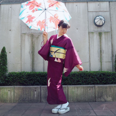 | 着物について | 友人の結婚パーティへ夏着物で☆ 主役の2人が気軽なパーティーをということで、ワンピース感覚の夏お召しで。 帯の桔梗と日傘の百合で夏らしく☆ |