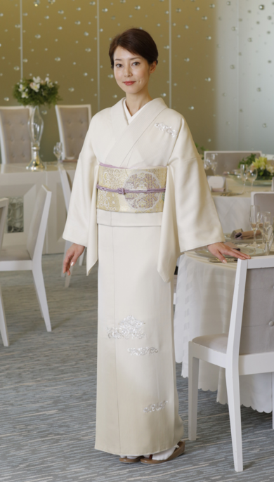| 着物について | ベージュの地に美しい刺繍がされた、品の良い付けさげ。お茶会や七五三にも。 https://goo.gl/5c1DfD |