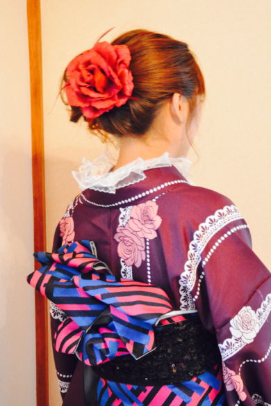 | 着物について | 秋コーディネートのご紹介にヘアを華やかなアップにして大人ガーリーコーディネート。 フリフリリボンと着物をシックなラメ帯揚げと幾何学模様の半幅帯で引き締めました。 大人の甘辛コーディネート❤️ モデルEmi ヘア監修 Mio 着物、着付け、撮影 waraku |