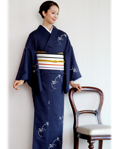 | 着物について | 洗えるきもの「小紋5点セット」に新柄が登場です! モデル着用コーデでお届けなので、コーディネート済みで迷うこともありません! 大人な紺地に、丸のモチーフで葉柄を合わせたシックシンプルなデザイン。 飛び柄の小紋なので、おちついた上品な雰囲気です。 http://item.rakuten.co.jp/toiki/0005-01601-f-2/ |