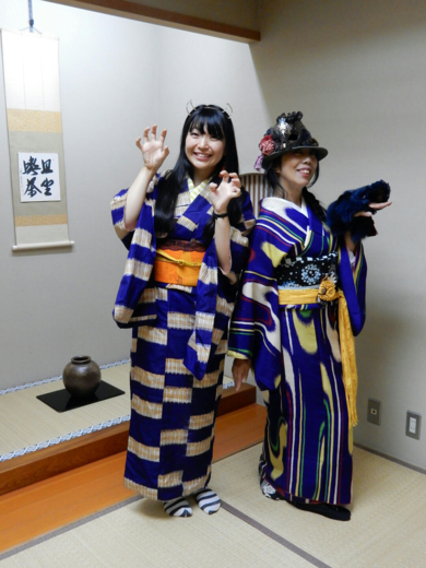 | 着物について | 伊達武将隊の「畑と着物で女子会」でのハロウィンパーティで主催者の畑ちゃんと。 二人ともアンティーク着物です。 |