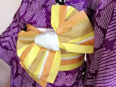 | 着物について | アンティークの絞りの着物にモダンなボーダーの半幅帯を合わせました。 衿元、帯揚げ、帯締めに黒を入れて統一感を出しています。 |