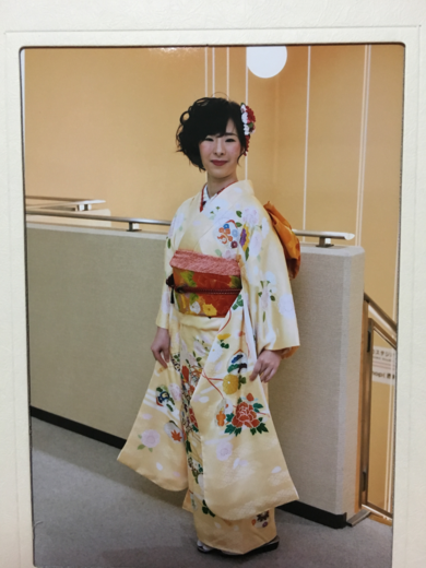 | 着物について | 西陣織会館さんでの「ハレの日のきものショー」に参加させていただいたときのお写真です♪ クリーム地に貝桶や貝合わせの文様のお振袖はお気に入りの一着です(*^^*) |
