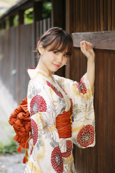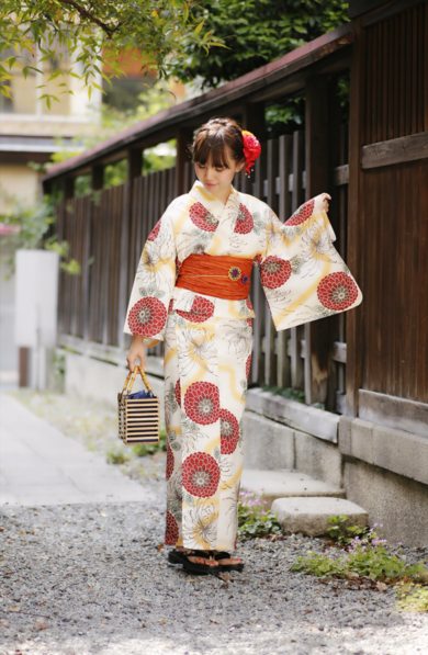 | 着物について | 元気が出る赤がテーマ! 真っ赤ではない朱色の帯と、ホワイトの面積があることで涼しげに見えるようにしました(*^^*) |