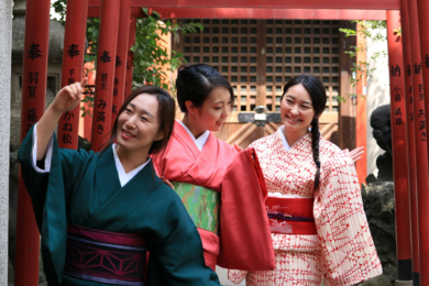 | 着物について | 『深川おどり』の「夢芝居」ワークショップに参加した仲良し三人娘☆ とても素敵なお着物コーデでした。 ワークショップの会場は江戸最大のパワースポットの一つである富岡八幡宮! お稽古後は境内を散策しました♪ 七渡神社の弁天様に踊りが上手くなることと良縁を祈願♡ お使いの白蛇に遭遇したら心願成就間違いなしだそうですよ! |
