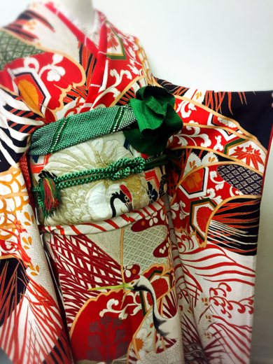 | 着物について | アンティーク着物鶴の柄の、黒振り袖♡ 黒赤ときたら、緑をアクセントに、帯揚げ帯締めまとめてみました。ヘアセットは、やっぱり和髮が似合うはず☆ 成人式前撮り・当日レンタル可。 お問い合わせ下さい。 |