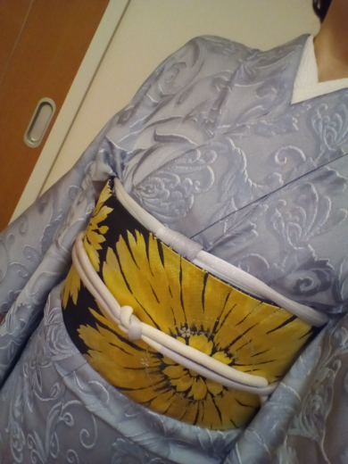 | 着物について | モデル事務所の撮影がありました。 織りと、ろうけつ染めで陰影を出したお着物。 ウコンで染めた帯。 帯締め、帯揚げは同系であわせて。 |