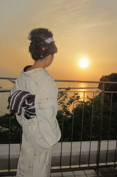 | 着物について | (左)洗える夏塩沢風着物に献上柄半巾帯&兵児帯のコラボ結び (中)洗える紗に化繊半巾帯 (右)久留米絣に化繊兵児帯 |