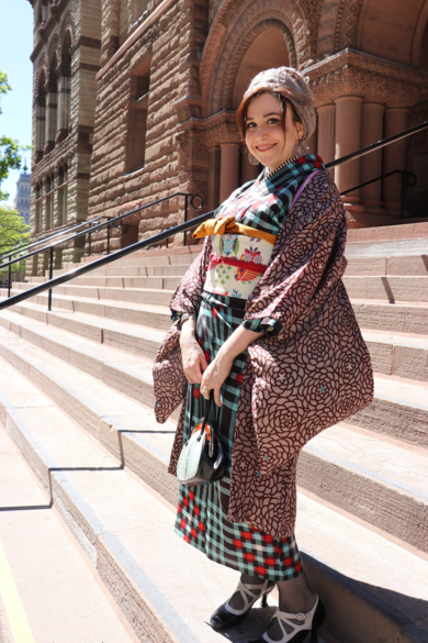 | 着物について | トロントで着物イベントを開催し、ステキな着物女子をスナップさせていただきました♡ お気に入りの銘仙のお着物なんですって♪ |