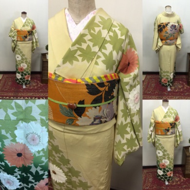 | 着物について | アンティーク着物と帯を着せて見ました。 とても美しいお着物です✨ しっとりとした柔らかい正絹がいい雰囲気を出しています。 帯もアンティーク、リバーシブルで裏はピンクと黒でお花柄になっています。 お着物も帯も、シミなど出ていますが、この美しさです🍀 |