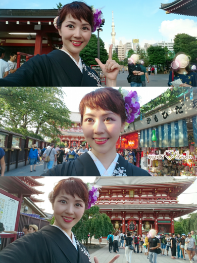 | 着物について | 八月最終日となりました! 今月初旬に東京浅草にて行われた全東京写真連盟写真コンクールの表彰式にプレゼンターとしてキモノで行ってまいりました。 プレゼンターという立場としてはセミフォーマルで・・・と、いうことで、五年ぶりくらいに絽の訪問着に袖を通しました。 地が黒いので重いかな?とも思ったのですが・・・今年の夏は行方不明になっていた・・・金彩の施されたそれなりに柄に色のある白地の絽の袋帯があったのでこれで行こうと決めました。 帯揚げ帯締めは濃いめの紅色にして、ピンクの柄が可愛らしくなりすぎに見えないようにしつつ、 普段はパッキリ白の半襟ばかりなのですが、敢えて刺繍の入った絽の半衿と、色は抑え気味でも華やかな髪飾りで・・・重さやフォーマル感を調整してみました。 こちらの左サイドにつけているメインの髪飾りは、先日掲載させていただいた浴衣姿でも使用しているのと同じものです。 右後ろにつけているつまみ細工は今回はピンクと黄色と白のグラデーションにしてみました。 つまみ細工のかんざしを、自分でも作れるようになりたいな・・・と思いつつ、早数年。随分と先まで予約でいっぱいの先生が多いですが・・・なんとか習いに行ける素敵な先生をこちらのサイトにて見付けられたらいいな。 私のキモノの寸法の特徴に・・・振りを少し長めに仕立てている・・・というものがあります。反物の寸法がとれればなのですが。 一般的な女性としては背が高い方になってしまうので、その方がなんだかバランスがいいんですよね。皆様も理想のバランスを探してみてはいかがでしょうか? 自分の体型にコンプレックスがあり少しでもスラッとみせたいので、こちらでも草履は高さのあるものにしています。黄味の強いクリーム色の草履にレースのシールとラインストーンで自分でアレンジしてあります。 少しずつ自分向けのアレンジを施して、愛着を持って美しい着姿の魅せ方を追求して、着こなしていけたらいいですよね。 今回のお写真は全て同じ日ではありますが・・・ 浅草寺周辺でのスマホのインカメラのSELFIEと、カメラには素人な着付師にスマホのアウトカメラで撮影してもらったものと、ベテランカメラマンさんにカメラマンさんの高級機材にてお撮りいただいたものです。一目瞭然ですね^^; 全東京写真連盟のベテランカメラマンさんに感謝です! 皆様は、着物姿をどのように撮影していらっしゃいますか? |