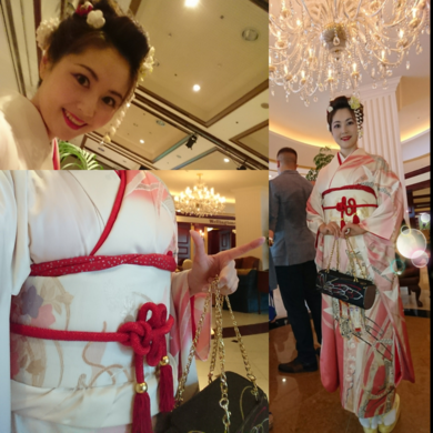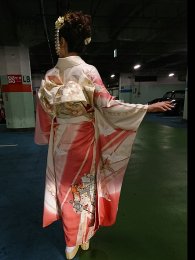 | 着物について | 九月になりましたね!ふたたび単衣の季節・・・ という事で、今回は単衣の振袖について✨ こちらは、数年前の七月初旬に挙式披露宴をした、地元の親友の披露宴に出席する為に誂えたものでした。 同じ東京都とはいえ、内地から遠く離れた島へと嫁ぐ親友を祝い、幸せを願うための装いとして用意したものです。 色々と検討した上で元から家にあった反物を仕立てる事になりました。 本来ならば七月初旬なので絽の振袖・・・となりますが、正絹で仕立てようとすると、まず振袖用の白生地から捜して色柄を決めて・・・と言ったように、長いお時間と費用と運が必要となるのだそうです。 今では京都さんの方でも、絽の振袖を仕立てる方は数年に一度、茶道のしきたりの中などで、たまたまどうしても盛夏に着用しなければならなくなったお立場のお嬢さんが、仕立てるのみとなってきているのだそうで・・・ 庶民には全く手が出ない代物となっているようです。 皆様は、展示会や呉服屋さんをご覧になられていて・・・ なぜ、絽の振袖用の帯締めや帯揚げなど小物がないのだろう?と不思議に思われたことはございませんか? まだ黒留袖用の夏物はお見掛けしますけれど。私は常々思っておりました。 ・・・幸い親友はホテルのバンケットルームでの披露宴ということで、御母堂さまも袷の黒留袖をお召しになられるとの事でしたので、単衣の振袖でということになりました。 柄行は御所車など少し古めかしいものですが貴い方を乗せて運ぶものですし、折鶴などもまるで飛んでいるかのように流れる柄行となっていて、熨斗模様も入っていたり、白地ではありますがピンク系のぼかしも多く入っていたのでこちらに決めました。 長襦袢は仕方ないので袷用のものに絽の半衿をつけました。 見た目の爽やかさと、柄の意味合い、重要ですよね。 しかしながら・・・最も困った事は・・・夏物の振袖用の小物が見つからなかったことなんです。 絽の袋帯は白地となってしまいましたが、金彩や色柄がそれなりにきちんと柄にも合わせて入っているものがあったので、どうにか。 こちらの帯は、先月にアップした絽の訪問着に合わせているものと同じになります。 < http://www.kimonobijin.jp/sp/photos/detail.asp?id=662 > 帯締めは、夏を意識していたわけではないのですが、たまたまビーズの丸ぐけを持っていたのでそちらを。 ・・・泣かされたのは草履と帯揚げでした。 苦肉の策で・・・淡いクリーム色の振袖用の高さのある草履に、鼻緒やかかと部分などにレースのシールやラインストーンを貼り付け、少しだけ軽やかさを演出してみました。 帯揚げはどうしても見付からなかったので、はっきりした赤色のかなり薄い生地の平に桜の花びら型のオーロラ箔が敷き詰められているモノで代用しています。 披露宴に参列した時は髪飾りなどはこちらの写真とは違い、最小限に抑えて、メイクも淡いピンク系の色で統一しました。 色々な工夫が必要になるこの季節のフォーマルな装いですが・・・ こちらの記事が、どなたかの参考になればいいな♪ 因みにこちらのお写真は・・・この夏に任地が変わり本国へと戻る事になられた、日本を大好きだと言って下さる友人でもある米海兵隊少佐のFarewell Partyでのものです。 立場ある大切な方を送り出すのにもぴったりなお柄でしたので、日本の中の米国軍管理という特殊なホテルのバンケットルームでしたし、彼に初めて会った時にも私は白地の振袖でしたので『華やかで晴れやかな日本の和の装い』で送り出したいとの思いもあり、会に対して少し格が高くはなってしまいますが、こちらの装いにて最後のお別れを告げてまいりました。 正絹のつまみ細工は外国の方からも人気ですね。こちらは下がりが別パーツになっているのでつけない選択もつける位置を選ぶことも出来ます。私は俯いた時にフェイスラインが綺麗に見える位置をいつも探しています。 それでは・・・親友が今も幸せなこと!送り出した彼が母国で元気に過ごしていることを願って! 長文へのお付き合い、ありがとうございました♡ |