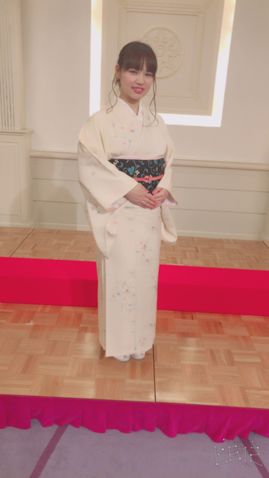 | 着物について | 淡い色に、淡い色の花が。黒の帯でメリハリを付けつつ、帯揚げ帯締めはピンクで可愛らしく。 |