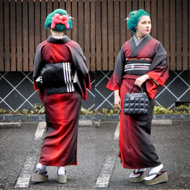 | 着物について | 先月のきものサローネの着物コーデです。 赤と黒のグラデーションの着物を手作りの帯と半衿に合わせました。 厚底草履もSALZ Tokyoのデザインです。 青野工房の方と会えて、ビビット色の着物仲間はできました(笑) Instagram: @salztokyo www.salz-tokyo.com |