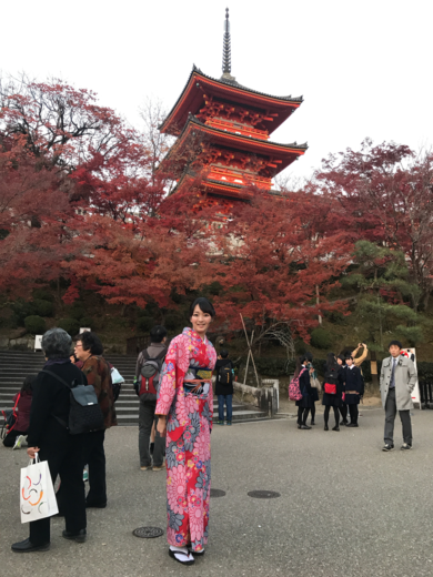 | 着物について | 京都で着物をレンタルしました! 秋らしい赤い着物です。 帯は見えづらいですが花札柄の帯です。 |