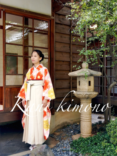 | 着物について | 大面積抽象椿柄×無地白袴 |