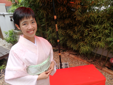 | 着物について | 少し濃いピンク色の絽のお着物が珍しいと思いました。名古屋帯もお店の方と相談しながらコーディネートしました。何だか大人っぽくなったような気がします。 |