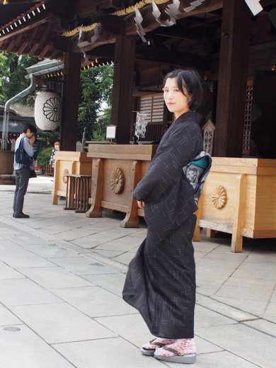 | About My Kimono Outfit | 夏大島紬です。 黒に生えるよう水色の帯揚げを使用しました。 帯にも少し青が入っています。 |