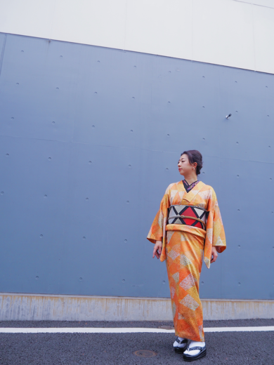 | About My Kimono Outfit | 友人の結婚パーティーへ光沢のあるゴールドオレンジの小紋を着ていきました。 コーデ詳細はBLOGから。 プロフィールからどうぞ。 |