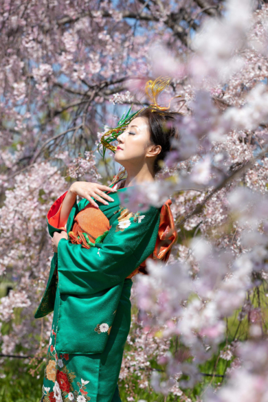 | About My Kimono Outfit | 桜の花と グリーンの訪問着(^-^) 表現力をみて頂きたく思います #ロイヤルエスコートグランプリ #関西支部代表 |
