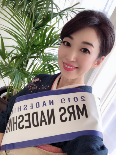 | About My Kimono Outfit | サッシュをかけて。 ミセスなでしこのプレゼンターなので、お着物は控えめにシックなお色にしました。 |
