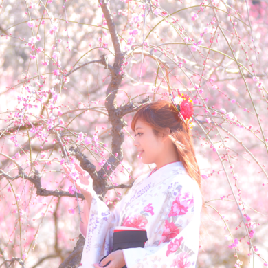 | About My Kimono Outfit | 大人かわいいはいからさん袴スタイル 春のお花モチーフの明るめのお着物と 紫と赤のドット伊達襟を差し色に ヘッドドレスバージョンと髪飾りでモードチェンジ💕 model Emi |