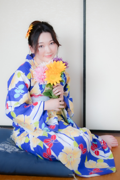 | About My Kimono Outfit | 🌻をテーマに若々しいフレッシュさに合わせてコーディネート ビビットな色使いとレトロな街並みとのミックスで 浴衣姿の夏感を演出 model 伊藤 若菜 |