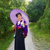 | About My Kimono Outfit | これが私の最初の着物です。買ったの時、まだ着付け知っていない。だから、この着物は短すぎる!でも美しいから、時々袴と着物を着ることが好きだ。この着物の紫と明るい赤がたまらない。 |