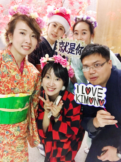 | About My Kimono Outfit | 台湾での着物クリスマスパーティーでした! リサイクル和装ですが、大切な日はこの赤い着物着ています。クリスマスっぽく緑の帯でまとめてみました。 |