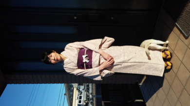 | About My Kimono Outfit | 5年程前にロビンソンの着物特設会場で購入しました♪ ベージュ地にドットやクローバー等、可愛らしい柄が散りばめられているお気に入りの一枚です♪ 柄にパープルが入っているので帯の色を合わせました。 綿レース&リボンを帯締め代わりに使用しています。 |