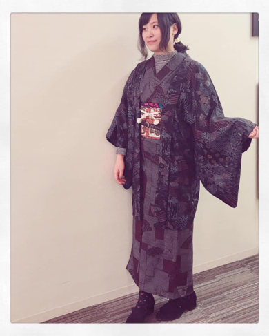 | About My Kimono Outfit | 冬天蠻常在和服內搭高領的衣服。 而既然上半身內搭了一般衣服,下半身就用鞋子來取得整體平衡。 和洋折衷,是很適合融入現代的穿法。 |