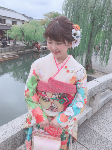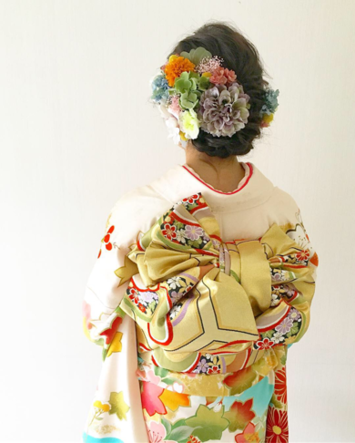 | About My Kimono Outfit | たくさんのプリザーブドフラワーで、着物を可愛く見せました。帯結びは、成人式にふさわしく華やかにヒダを細かく作りました。 |