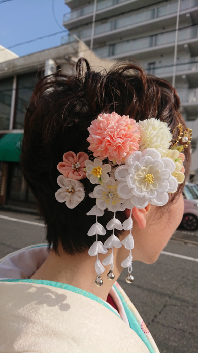 | About My Kimono Outfit | ショートカットを髪飾りで可愛くアレンジしてもらいました♪ |