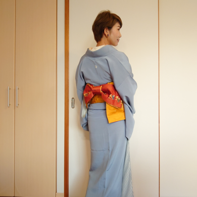 ふだん着物で子育て中。