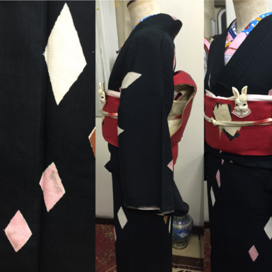 | 着物について | 今日のお着物は、お嫁入りが決まっているアンティークキモノです。 汚れがなく大きさもまぁまぁあるので、とても良い状態のお品でした💓 手書きのようなダイヤ柄がポツポツと置かれたかわいい柄ですが、地色は落ち着きのある深緑の絶妙なバランスの色合いです👘 帯は、正絹名古屋帯、こちらも古いお品でシミがポツポツと出てしまっていますが、こうしてお着物とあわせるととっても素敵です。 帯も嬉しそうです✨ 帯揚げに着けたうさぎのブローチは、KINOPI-Sさんの作品です💕 KINOPI-S作品は、手の込んだ一点一点手作りのお品です✨ ラブズキモノ作家さんページ第一号として、商品を紹介させて頂いております。 作家ページをクリックして見ていただければ、とっても嬉しいです😊 |