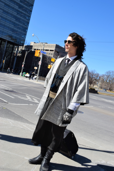 | 着物について | Torontoのメンバーに着物・羽織・帯をプレゼントしたら和洋折衷のコーデを披露してくれましたよ♪ワイシャツとドクロ柄の黒ネクタイとブーツの相性もいいですね。 紫の着物の方は男性ですがいつも女性着物を楽しんでいます。ヘアカラーも紫に染めてオシャレさんです♪ |